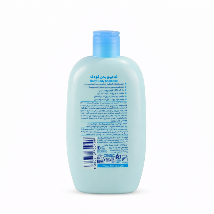 شامپو بدن کودک فیروز حاوی گوار و گلیسیرین | شوینده ملایم و سازگار با پوست حساس کودک